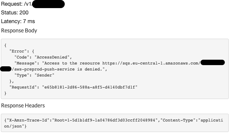 error message가 "access to the resource is denied."... Execution role을 다시 봤지만 문제 없었다... 뭐가 문제지???하며 보내는 쪽이 문제 없다면 받는쪽은? 하는 생각이 들었고 SQS의 spec을 뒤지기 시작함.