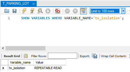 Mysql 의 InnoDB 스토리지 엔진의 기본 Isolation Level이 REPEATABLE-READ 이고 Oracle 은 READ-COMMITED 입니다. 각 DBMS별 isolation level 에 자세한 내용은 다음 링크에서 참조할 수 있습니다.